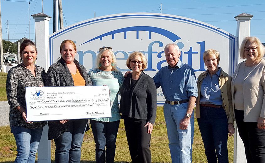 The Alice Kelly event was created by some of Kelly’s friends after she succumbed to Hotchkin’s disease in the late 1980’s. Kelly started the Outer Banks Cancer Support Group when she was diagnosed and the tournament has been the primary fund raiser for the group since its inception. Management of the group was recently taken over by Interfaith Community Outreach and the current members and volunteers are truly happy with the organization that Interfaith has provided. “Helping cancer patients is different than some of the other assistance we offer in the community,” explains Jennifer Albanese the Director of Interfaith. “Each case is so different but we are able to provide transportation, which was the original mission of the Cancer Support Group, and financial support as well.” The Group received a donation of $27,606.00 from the tournament which was raised through entry fees, sponsor dollars and raffle tickets.